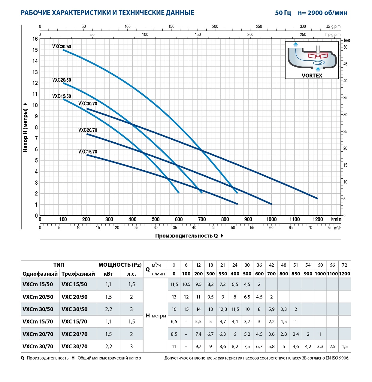 Насосы серии VXC изготовлены из чугуна, значительной толщины, эти насосы отличаются чрезвычайной прочностью и устойчивостью к абразивному воздействию, оснащены рабочим колесом типа VORTEX. Они предназначены для откачки вод, содержащих твердые частицы во взвешенном состоянии, загрязненных, сточных вод в смеси с грязью, а также регенерированных и гниющих шламов. Эти насосы особо рекомендуются для установки в канализационных системах, туннелях, котлованах, каналах, подземных гаражах и т.д.