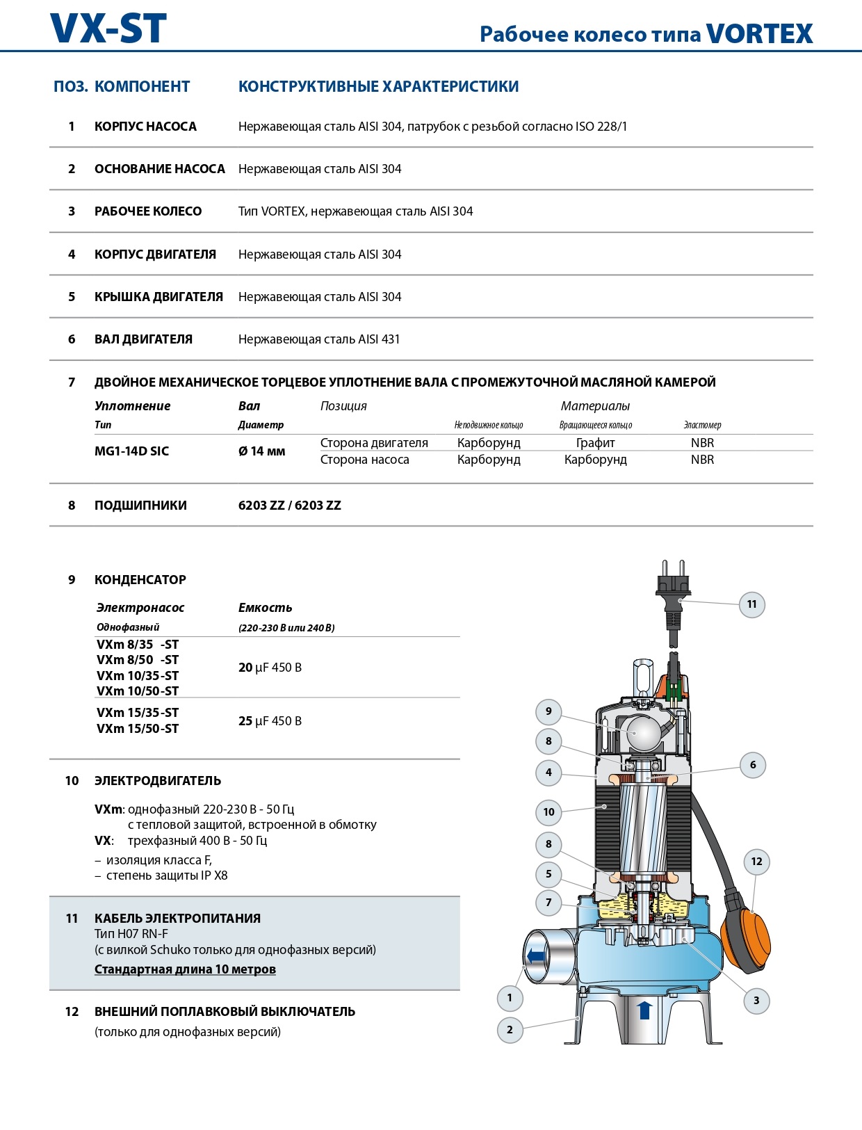 Погружные насосы VX-ST из нержавеющей стали рекомендуется для дренажа сточных вод в бытовом секторе, общественных и промышленных установках, в случае, когда есть взвешенные твердые частицы, например, илистые воды, грунтовые воды, поверхностные воды. Насосы отлично подходят для отвода воды из затопленных подвалов, подземных автостоянок, автомоек, а так же для опорожнения выгребных ям и канализации. Агрегаты отличаются своей надежностью и могут быть особенно полезны при работе в автоматическом режиме в стационарном варианте.