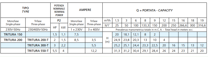Электрические насосы серии TRITURA используются для откачки сточной воды и канализации при наличии в ней твердых тел большого размера, при перекачки особо грязной воды с включениями бытового и промышленного назначения.