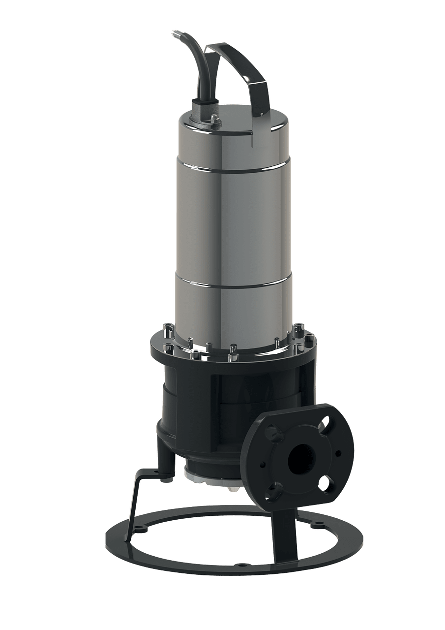 Полностью затапливаемый погружной насос для отвода сточных вод с внутренним режущим механизмом, для вертикальной установки в погруженном состоянии, для перекачивания загрязненной воды и сточных вод с фекалиями (область применения согласно EN 12050-1), в т. ч. с длинноволокнистыми фракциями. Гидравлический корпус и рабочее колесо из серого чугуна, корпус электродвигателя из нержавеющей стали, уплотнение со стороны насоса и электродвигателя с двумя независимыми торцевыми уплотнениями. Подсоединение к напорному патрубку с горизонтальным переходником и резьбовым/фланцевым соединением. Двигатель с поверхностным охлаждением в трехфазном исполнении с датчиком контроля температуры обмотки электродвигателя и камерой уплотнений. Кабель электропитания со свободным концом.