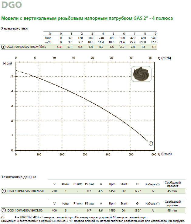 Канализационный насос Zenit DGO 100/4/G50V B0CM5 NC Q TCSGT E-SICAL 05 230 V