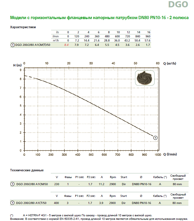Канализационный насос Zenit DGO 200/2/80 A1CM5 NC Q T E-SICAL 05 230 V