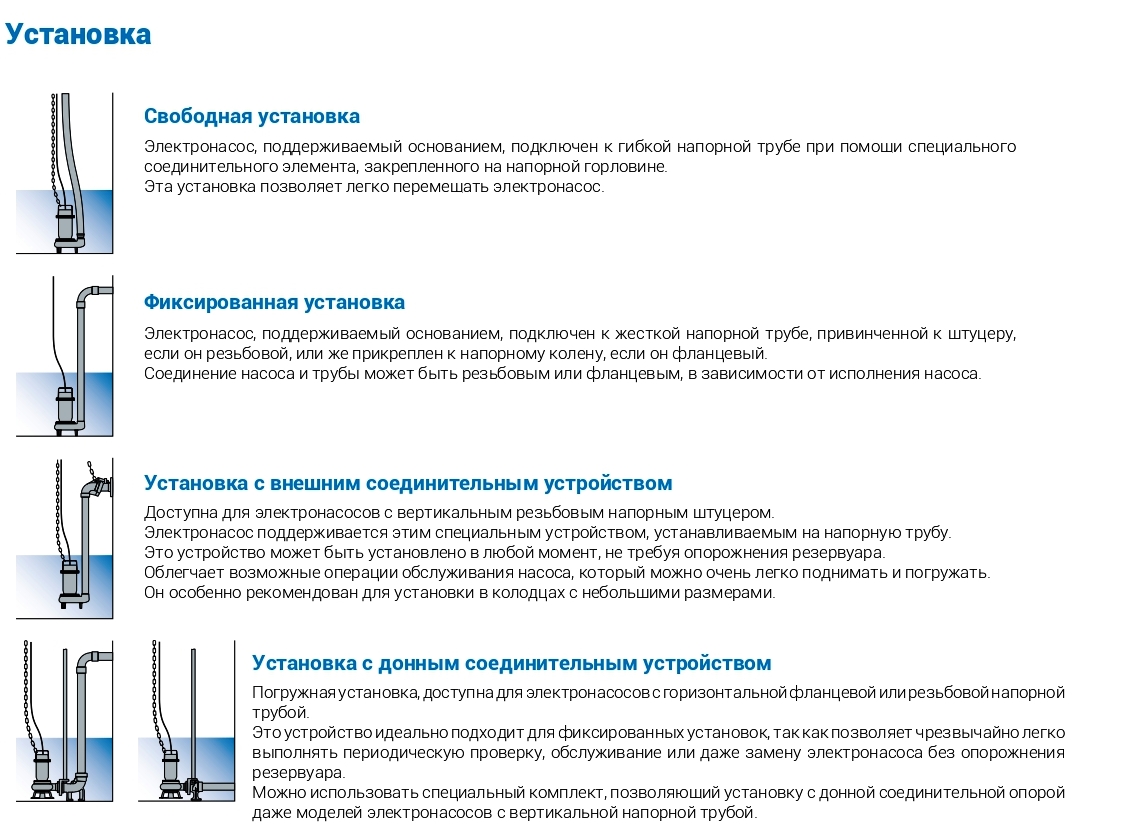 Может использоваться при наличии чистых или слегка загрязненных вод, содержащих небольшие твердые тела, отфильтрованных стоков, ливневых стоков, для дренажа или отвода подземных вод. Предназначается лишь только для бытового применения.