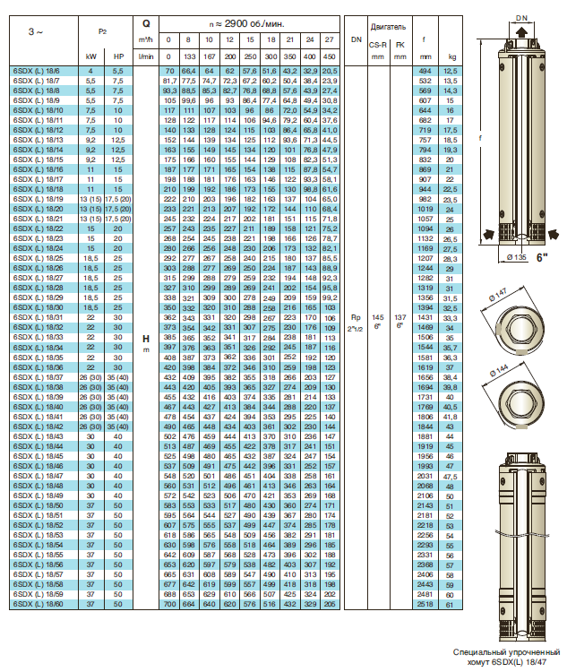 Погружные электронасосы из нержавеющей хромоникелевой стали, с наружным кожухом для глубоких скважин диаметром 6” (DN 150мм) и 8” (DN 200мм).