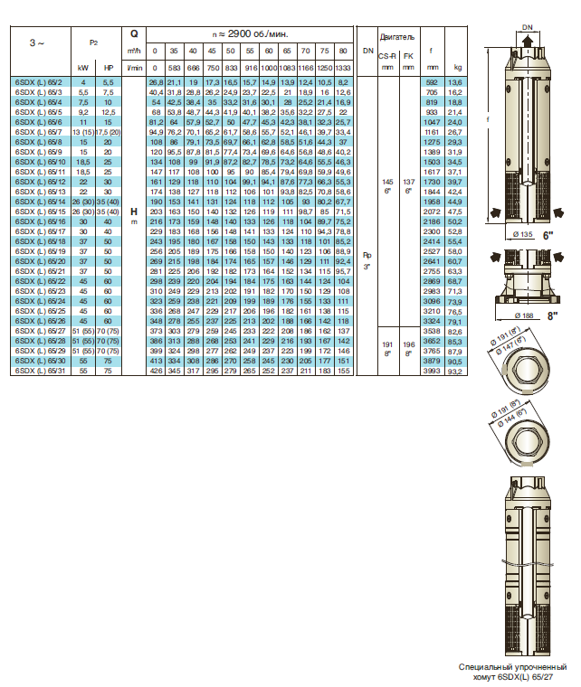 Погружные электронасосы из нержавеющей хромоникелевой стали, с наружным кожухом для глубоких скважин диаметром 6” (DN 150мм) и 8” (DN 200мм).