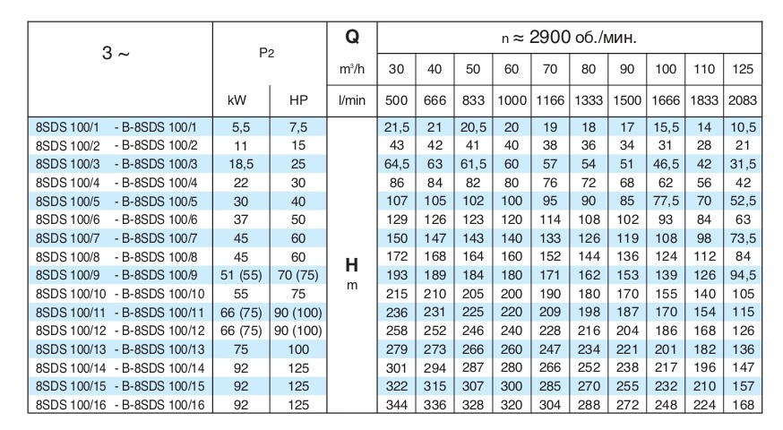 Диаметр насоса в дюймах
