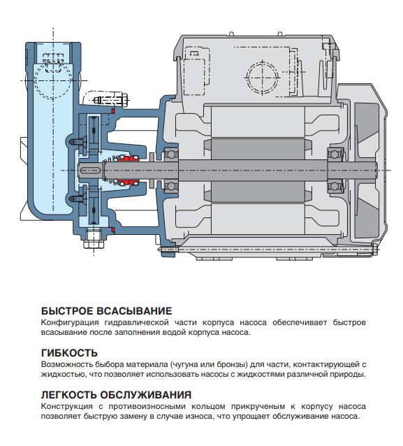для перекачивания жидкостей, в которых присутствует воздух или газ или которые подаются на всасывание с короткими перебоями для водоснабжения из колодцев.