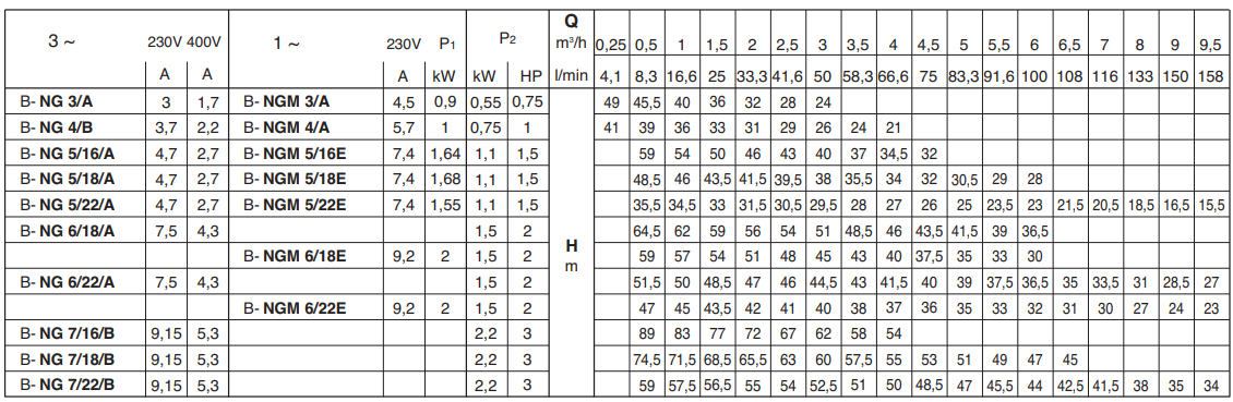 Calpeda B-NG — самовсасывающие моноблочные центробежные насосы со встроенным эжектором. Версия с корпусом насоса и соединительной частью из бронзы. Применение: для чистых жидкостей или слегка загрязненных поверхностных вод, увеличения давления, подаваемого из распределительной сети (соблюдая местные стандарты), водоснабжения из колодцев, использования в садоводстве, мытья напором воды.