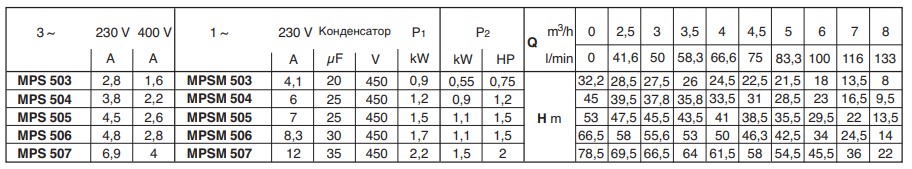 Насосы Calpeda MPSM — погружные многоступенчатые моноблочные насосы с термозащитным устройством. Встроенный конденсатор, доступный через корпус подающей части. Гидравлическая часть внизу и двигатель сверху охлаждаются перекачиваемой водой для обеспечения надежной работы даже при частично погруженном насосе. Двойное уплотнение на валу в масляной камере для надежной защиты двигателя от воды и для защиты от сухого хода. Фильтр на всасывании предотвращает попадание внутрь твердых тел диаметром более 2 мм. Применяются для водоснабжения из скважин, ванн или резервуаров. Использование в быту, промышленности, садоводстве и для ирригации. Утилизация дождевой воды.