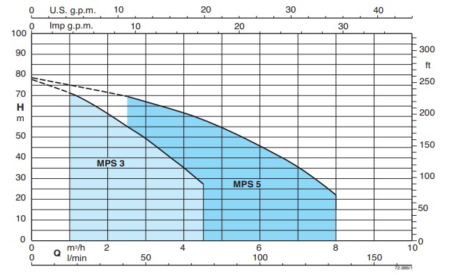 Насосы Calpeda MPSM — погружные многоступенчатые моноблочные насосы с термозащитным устройством. Встроенный конденсатор, доступный через корпус подающей части. Гидравлическая часть внизу и двигатель сверху охлаждаются перекачиваемой водой для обеспечения надежной работы даже при частично погруженном насосе. Двойное уплотнение на валу в масляной камере для надежной защиты двигателя от воды и для защиты от сухого хода. Фильтр на всасывании предотвращает попадание внутрь твердых тел диаметром более 2 мм. Применяются для водоснабжения из скважин, ванн или резервуаров. Использование в быту, промышленности, садоводстве и для ирригации. Утилизация дождевой воды.