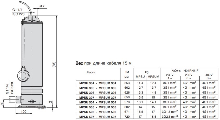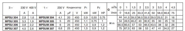 Насос Calpeda MPSUМ 305 - моноблочный вертикальный многоступенчатый насос из нержавеющей стали AISI 304 со встроенным конденсатором, доступным через корпус подающей части. Ступени изготовлены из норила(пластик который характеризуется высокой прочностью, стойкостью к ударным нагрузкам, в своем составе имеет 20% стекловолокна). Всасывающий раструб снизу и подающий раструб сверху. Двигатель сверху охлаждаются перекачиваемой водой. Двойное уплотнение на валу в масляной камере для надежной защиты двигателя от воды и для защиты от сухого хода. Для чистой воды без содержания абразивных частиц и веществ. Использование в быту и промышленности.