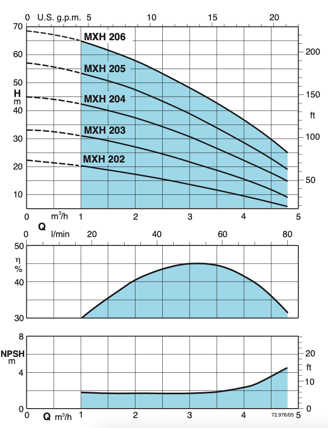 Применяется в водоснабжении. Подходит для перекачки чистых жидкостей, не содержащих абразивных примесей и не агрессивных для нержавеющей стали (по требованию поставляются насосы с уплотнением из особых материалов). Calpeda MXH — универсальный насос, использующийся в быту, промышленности, на садовых участках и для полива.
