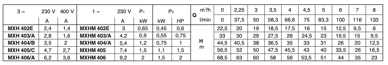 Применяется в водоснабжении. Подходит для перекачки чистых жидкостей, не содержащих абразивных примесей и не агрессивных для нержавеющей стали (по требованию поставляются насосы с уплотнением из особых материалов). Calpeda MXH — универсальный насос, использующийся в быту, промышленности, на садовых участках и для полива.