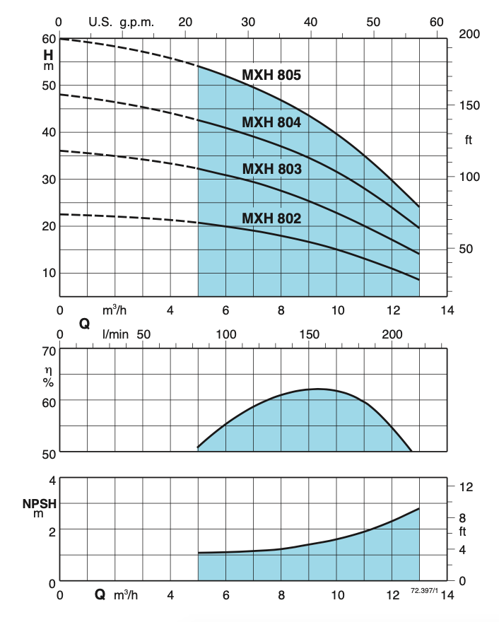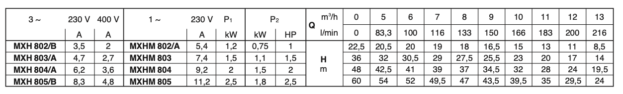 Применяется в водоснабжении. Подходит для перекачки чистых жидкостей, не содержащих абразивных примесей и не агрессивных для нержавеющей стали (по требованию поставляются насосы с уплотнением из особых материалов). Calpeda MXH — универсальный насос, использующийся в быту, промышленности, на садовых участках и для полива.