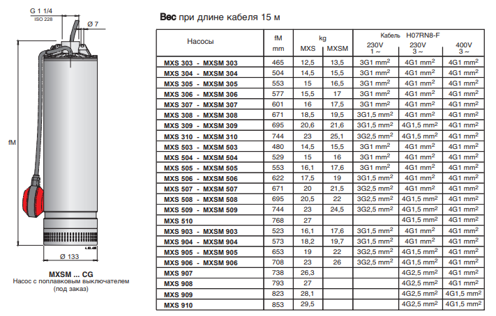 Насосы Calpeda MXS CG — погружные многоступенчатые моноблочные насосы c поплавковым выключателем. Все внутренние и внешние детали, контактирующие с жидкостью, изготовлены из нержавеющей хромоникелевой стали. Гидравлическая часть внизу и двигатель сверху охлаждаются перекачиваемой водой для обеспечения надежной работы даже при частично погруженном насосе. Двойное уплотнение на валу в масляной камере для надежной защиты двигателя от воды и для защиты от сухого хода. Фильтр на всасывании предотвращает попадание внутрь твердых тел диаметром более 2 мм. Применяются для водоснабжения из скважин, ванн или резервуаров. Использование в быту, промышленности, садоводстве и для ирригации. Утилизация дождевой воды.