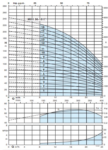 Calpeda MXV — многорядные вертикальные многоступенчатые насосы со всасывающим и подающим раструбами, имеющими одинаковый диаметр и расположенными на одном и том же валу. Направляющие втулки устойчивы к коррозии и смазываются перекачиваемой жидкостью. Применяются для водоснабжения, перекачивания чистых, невзрывоопасных жидкостей, не содержащих абразивных твердых или волокнистых примесей и не агрессивных к нержавеющей стали. Универсальный насос для использования в бытовой и промышленной сферах, в установках повышения давления, противопожарных установках, высоконапорных моечных устройствах, для полива, в сельском хозяйстве, в спортивных сооружениях.