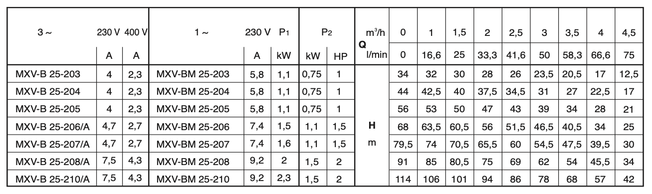 Calpeda MXV-B — универсальный насос для использования в бытовой и промышленной сферах, в установках повышения давления, противопожарных установках, высоконапорных моечных устройствах, для полива, в сельском хозяйстве, в спортивных сооружениях.