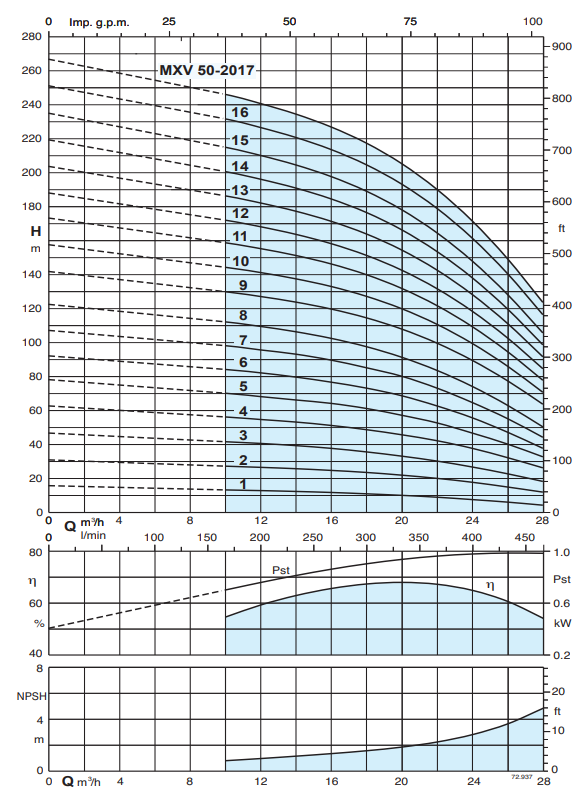 Calpeda MXV EI — многорядные вертикальные многоступенчатые насосы со всасывающим и подающим раструбами, имеющими одинаковый диаметр и расположенными на одном и том же валу, оснащены инверторами I-MAT. Направляющие втулки устойчивы к коррозии и смазываются перекачиваемой жидкостью. Применяются для водоснабжения, перекачивания чистых, невзрывоопасных жидкостей, не содержащих абразивных твердых или волокнистых примесей и не агрессивных к нержавеющей стали. Универсальный насос для использования в бытовой и промышленной сферах, в установках повышения давления, противопожарных установках, высоконапорных моечных устройствах, для полива, в сельском хозяйстве, в спортивных сооружениях.