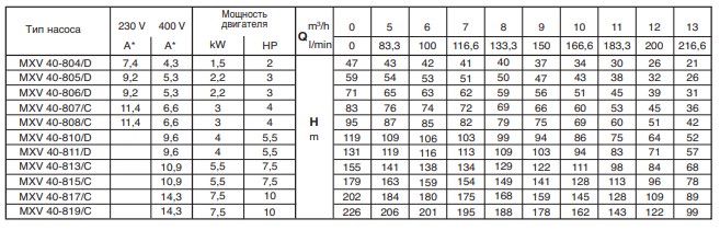Calpeda MXVL — многорядные вертикальные многоступенчатые насосы со всасывающим и подающим раструбами, имеющими одинаковый диаметр и расположенными на одном и том же валу. Простое снятие механического уплотнения-картриджа без демонтажа двигателя. Насос с упорным подшипником и соединением со втулкой для возможности использования люого стандартного двигателя конструктивной модели 1M 1V. Направляющие втулки устойчивы к коррозии и смазываются перекачиваемой жидкостью. Применяются для водоснабжения, перекачивания чистых, невзрывоопасных жидкостей, не содержащих абразивных твердых или волокнистых примесей и не агрессивных к нержавеющей стали. Универсальный насос для использования в бытовой и промышленной сферах, в установках повышения давления, противопожарных установках, высоконапорных моечных устройствах, для полива, в сельском хозяйстве, в спортивных сооружениях.