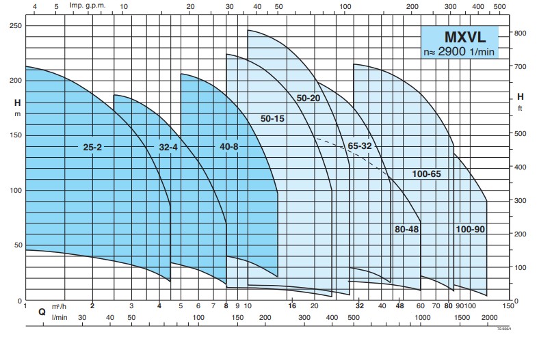 Calpeda MXVL — многорядные вертикальные многоступенчатые насосы со всасывающим и подающим раструбами, имеющими одинаковый диаметр и расположенными на одном и том же валу. Простое снятие механического уплотнения-картриджа без демонтажа двигателя. Насос с упорным подшипником и соединением со втулкой для возможности использования люого стандартного двигателя конструктивной модели 1M 1V. Направляющие втулки устойчивы к коррозии и смазываются перекачиваемой жидкостью. Применяются для водоснабжения, перекачивания чистых, невзрывоопасных жидкостей, не содержащих абразивных твердых или волокнистых примесей и не агрессивных к нержавеющей стали. Универсальный насос для использования в бытовой и промышленной сферах, в установках повышения давления, противопожарных установках, высоконапорных моечных устройствах, для полива, в сельском хозяйстве, в спортивных сооружениях.