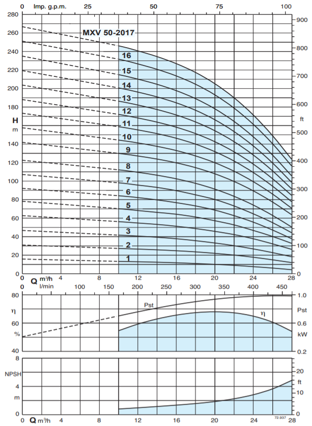Calpeda MXVL — многорядные вертикальные многоступенчатые насосы со всасывающим и подающим раструбами, имеющими одинаковый диаметр и расположенными на одном и том же валу. Простое снятие механического уплотнения-картриджа без демонтажа двигателя. Насос с упорным подшипником и соединением со втулкой для возможности использования люого стандартного двигателя конструктивной модели 1M 1V. Направляющие втулки устойчивы к коррозии и смазываются перекачиваемой жидкостью. Применяются для водоснабжения, перекачивания чистых, невзрывоопасных жидкостей, не содержащих абразивных твердых или волокнистых примесей и не агрессивных к нержавеющей стали. Универсальный насос для использования в бытовой и промышленной сферах, в установках повышения давления, противопожарных установках, высоконапорных моечных устройствах, для полива, в сельском хозяйстве, в спортивных сооружениях.