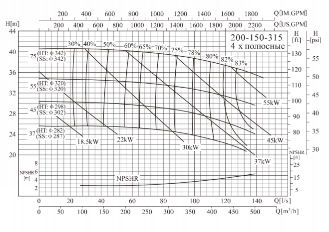 Центробежный насос CNP NISO200-150-315-55 H