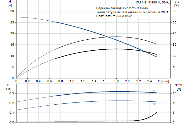 Компактный, надежный, горизонтальный, многоступенчатый, центробежный насос с односторонним всасыванием с осевым всасывающим и радиальным выпускным патрубком. Вал, рабочего колеса и камеры выполнены из нержавеющей стали. Впускные и выпускные части выполнены из чугуна. Механическим уплотнением вала является специально спроектированное, несбалансированное кольцевое уплотнение. Соединение с трубопроводами выполняется через внутреннюю трубную резьбу Витворта, Rp (ISO 7/1).