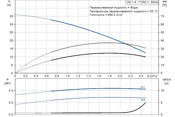 Насос оснащен асинхронным 1-фазным электродвигателем на лапах, с воздушным охлаждением.