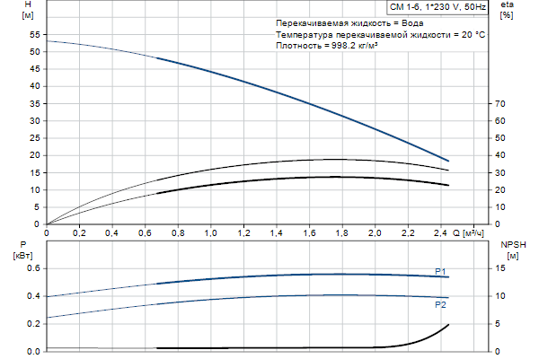 Компактный, надежный, горизонтальный, многоступенчатый, центробежный насос с односторонним всасыванием с осевым всасывающим и радиальным выпускным патрубком. Вал, рабочего колеса и камеры выполнены из нержавеющей стали. Впускные и выпускные части выполнены из чугуна. Механическим уплотнением вала является специально спроектированное, несбалансированное кольцевое уплотнение. Соединение с трубопроводами выполняется через внутреннюю трубную резьбу Витворта, Rp (ISO 7/1).