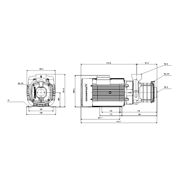 Компактный, надежный, горизонтальный, многоступенчатый, центробежный насос с односторонним всасыванием с осевым всасывающим и радиальным выпускным патрубком. Вал, рабочего колеса и камеры выполнены из нержавеющей стали. Впускные и выпускные части выполнены из чугуна. Механическим уплотнением вала является специально спроектированное, несбалансированное кольцевое уплотнение. Соединение с трубопроводами выполняется через внутреннюю трубную резьбу Витворта, Rp (ISO 7/1).
