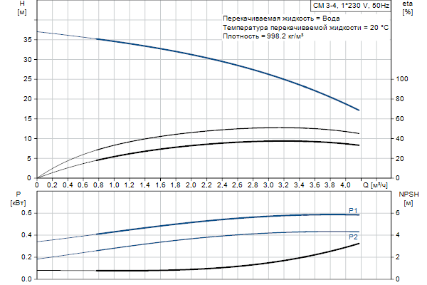 Компактный, надежный, горизонтальный, многоступенчатый, центробежный насос с односторонним всасыванием с осевым всасывающим и радиальным выпускным патрубком. Вал, рабочего колеса и камеры выполнены из нержавеющей стали. Впускные и выпускные части выполнены из чугуна. Механическим уплотнением вала является специально спроектированное, несбалансированное кольцевое уплотнение. Соединение с трубопроводами выполняется через внутреннюю трубную резьбу Витворта, Rp (ISO 7/1).