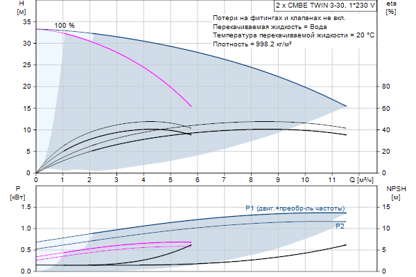 CMBE TWIN 3-30 I-U-C-C-D-ACMBE TWIN – комплектная насосная установка для повышения давления от компании Grundfos. Может быть использована как в бытовых, так и в коммерческих целях. Благодаря автоматическому регулированию производительности, CMBE TWIN способен поддерживать постоянное давление воды в системе водоснабжения. Датчик давления отслеживает изменения в объёмах расхода воды и подаёт сигнал на регулятор, чтобы повысить или понизить производительность установки. В зависимости от нагрузки на систему водоснабжения, CMBE TWIN регулирует свою производительность включая или отключая второй насос. Кроме того, CMBE TWIN может управлять работой каждого насоса в отдельности. В результате установка повышения давления задействует только необходимый ресурс, благодаря чему работает долговечно и с максимальной энергоэффективностью. CMBE TWIN проста в установке. После завершения процедуры монтажа CMBE TWIN достаточно лишь подключить к сетевой розетке. После этого насосная установка будет готова к работе.