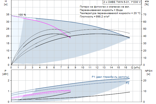 CMBE TWIN 5-31 I-U-C-C-D-BCMBE TWIN – комплектная насосная установка для повышения давления от компании Grundfos. Может быть использована как в бытовых, так и в коммерческих целях. Благодаря автоматическому регулированию производительности, CMBE TWIN способен поддерживать постоянное давление воды в системе водоснабжения. Датчик давления отслеживает изменения в объёмах расхода воды и подаёт сигнал на регулятор, чтобы повысить или понизить производительность установки. В зависимости от нагрузки на систему водоснабжения, CMBE TWIN регулирует свою производительность включая или отключая второй насос. Кроме того, CMBE TWIN может управлять работой каждого насоса в отдельности. В результате установка повышения давления задействует только необходимый ресурс, благодаря чему работает долговечно и с максимальной энергоэффективностью. CMBE TWIN проста в установке. После завершения процедуры монтажа CMBE TWIN достаточно лишь подключить к сетевой розетке. После этого насосная установка будет готова к работе.