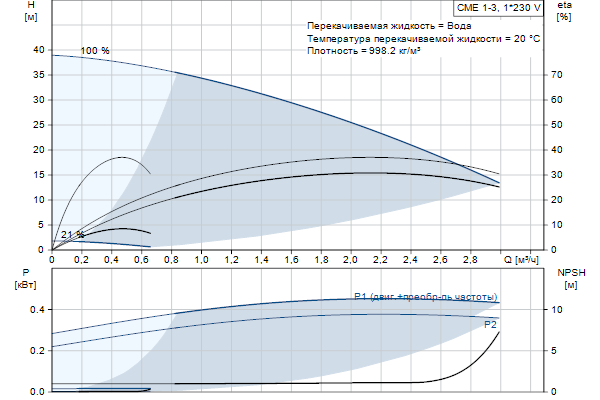Насос оснащен синхронным 1-фазным электродвигателем на постоянных магнитах с воздушным охлаждением. Электродвигатель включает частотный преобразователь и ПИ-регулятор в клеммной коробке. Это обеспечивает постоянное плавное регулирование частоты вращения электродвигателя, а также возможность корректировки рабочих характеристик в соответствии с заданными требованиями.