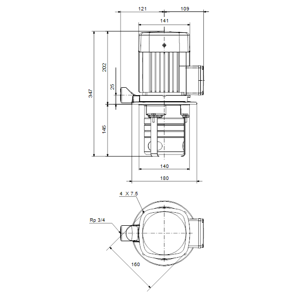 Фаза: Насос с глухим соединением, оснащенный стандартным 3-фазным