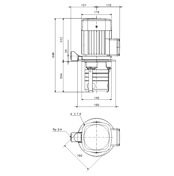 Фаза: Насос с глухим соединением, оснащенный стандартным 3-фазным