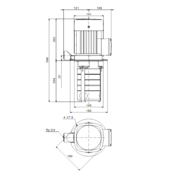 Фаза: Насос с глухим соединением, оснащенный стандартным 3-фазным