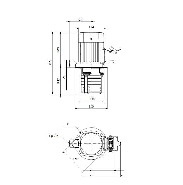 Фаза: Насос с глухим соединением, оснащенный стандартным 3-фазным