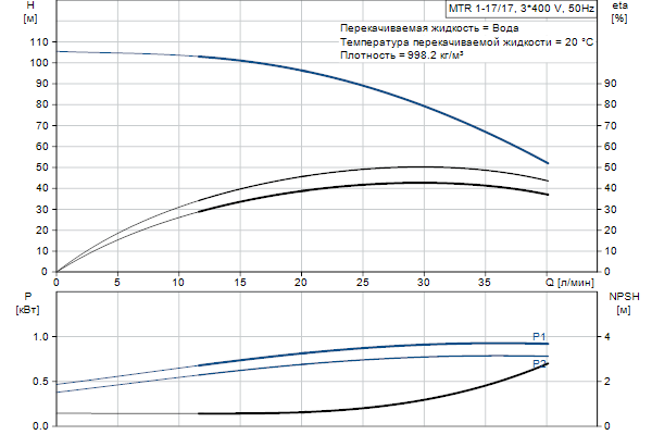 Головная часть и основание насоса из чугуна - все остальные контактирующие с перекачиваемой жидкостью детали из нержавеющей стали. Насос имеет следующие характеристики: