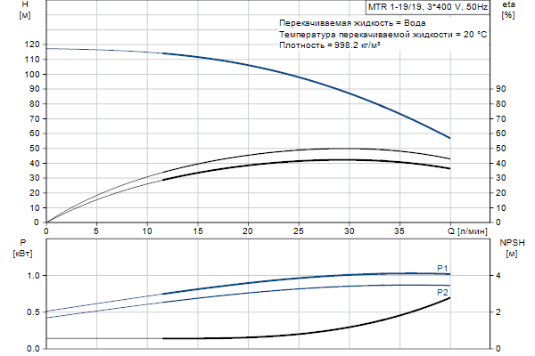 Головная часть и основание насоса из чугуна - все остальные контактирующие с перекачиваемой жидкостью детали из нержавеющей стали. Насос имеет следующие характеристики: