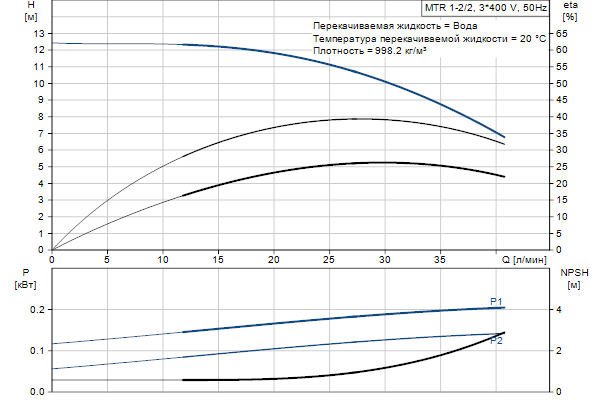 Головная часть и основание насоса из чугуна - все остальные контактирующие с перекачиваемой жидкостью детали из нержавеющей стали. Насос имеет следующие характеристики: