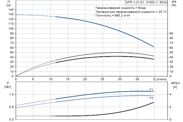 Головная часть и основание насоса из чугуна - все остальные контактирующие с перекачиваемой жидкостью детали из нержавеющей стали. Насос имеет следующие характеристики: