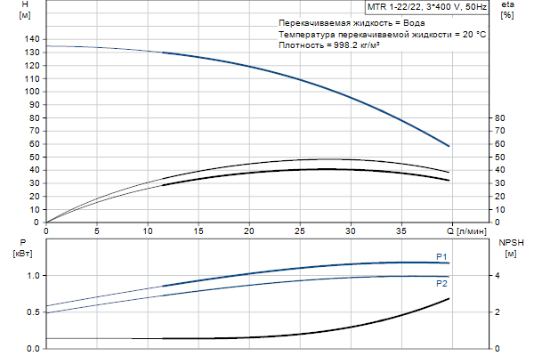Головная часть и основание насоса из чугуна - все остальные контактирующие с перекачиваемой жидкостью детали из нержавеющей стали. Насос имеет следующие характеристики:
