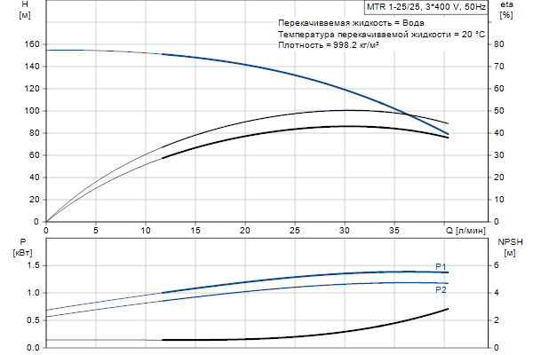Головная часть и основание насоса из чугуна - все остальные контактирующие с перекачиваемой жидкостью детали из нержавеющей стали. Насос имеет следующие характеристики: