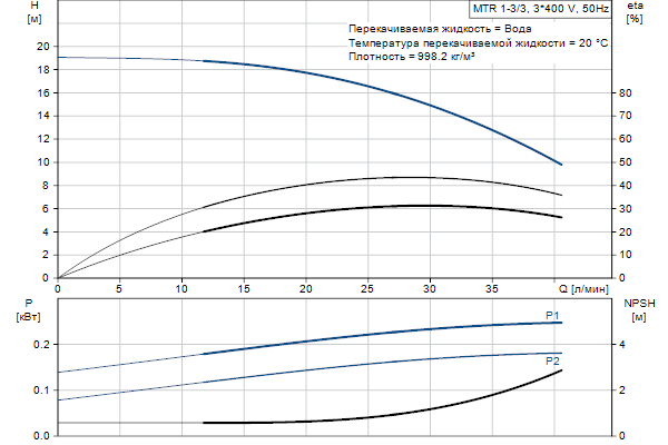 Головная часть и основание насоса из чугуна - все остальные контактирующие с перекачиваемой жидкостью детали из нержавеющей стали. Насос имеет следующие характеристики: