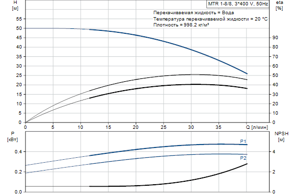 Головная часть и основание насоса из чугуна - все остальные контактирующие с перекачиваемой жидкостью детали из нержавеющей стали. Насос имеет следующие характеристики: