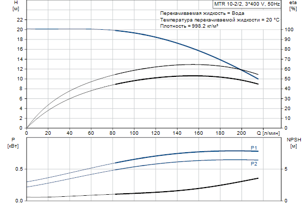 Головная часть и основание насоса из чугуна - все остальные контактирующие с перекачиваемой жидкостью детали из нержавеющей стали. Насос имеет следующие характеристики: