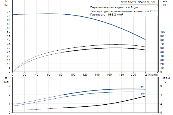 Головная часть и основание насоса из чугуна - все остальные контактирующие с перекачиваемой жидкостью детали из нержавеющей стали. Насос имеет следующие характеристики: