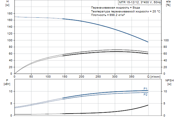 Головная часть и основание насоса из чугуна - все остальные контактирующие с перекачиваемой жидкостью детали из нержавеющей стали. Насос имеет следующие характеристики: