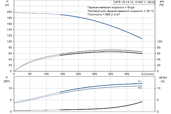 Головная часть и основание насоса из чугуна - все остальные контактирующие с перекачиваемой жидкостью детали из нержавеющей стали. Насос имеет следующие характеристики: